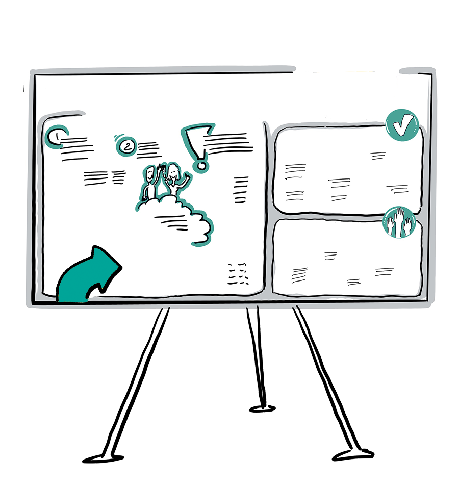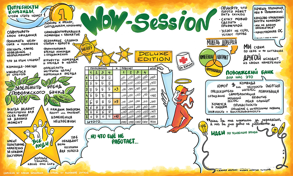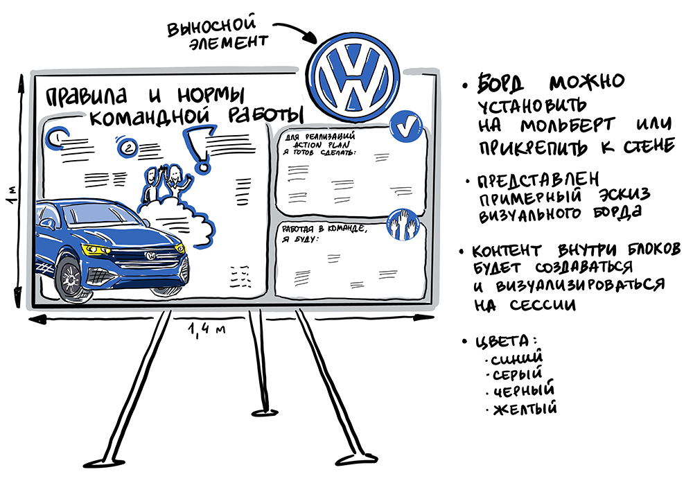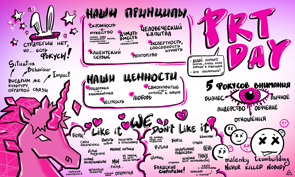 Эффект залипания, когда участникам интересен процесс создания визуального борда. И сам рисующий человек + ДИНАМИЧНОСТЬ. Удивите своих участников.