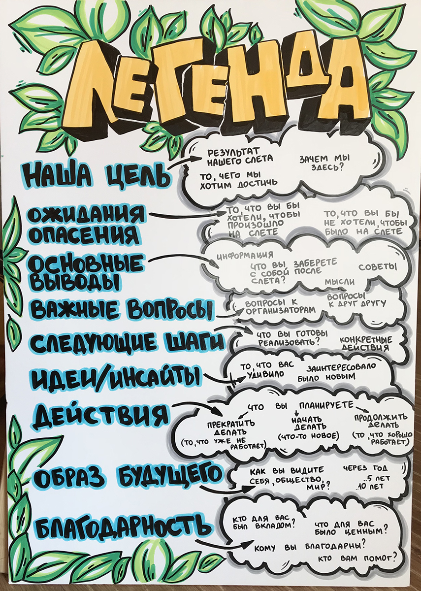 Фиксация контента вашего мероприятия при помощи визуальных инструментов прямо во время выступлений и презентаций.